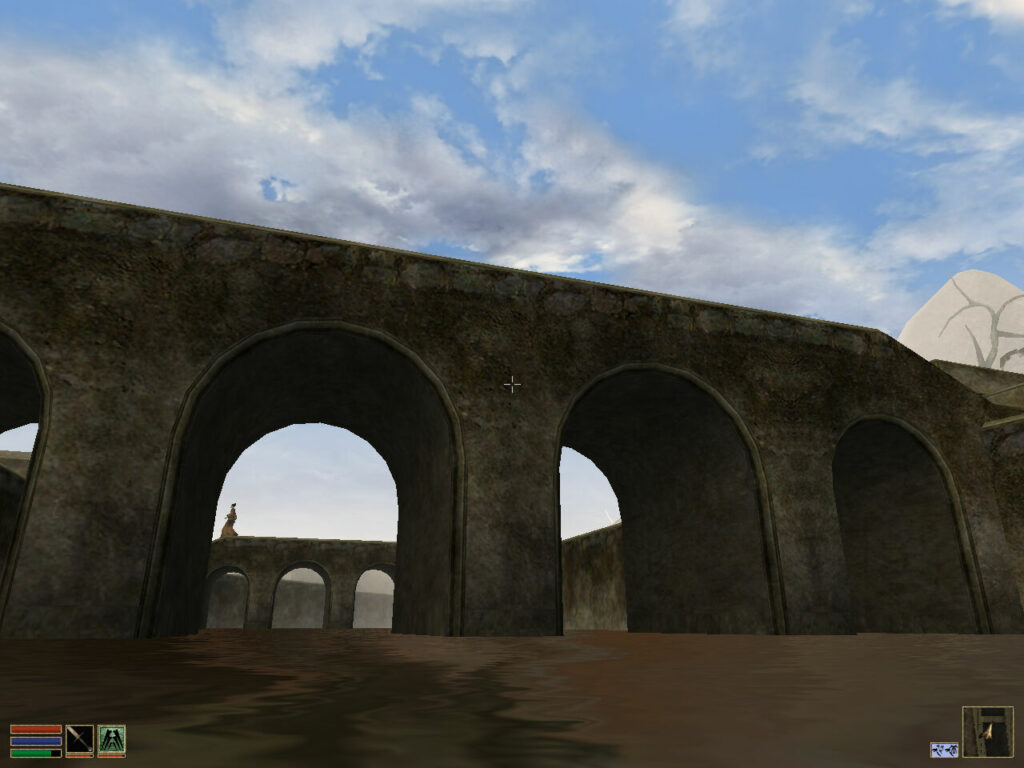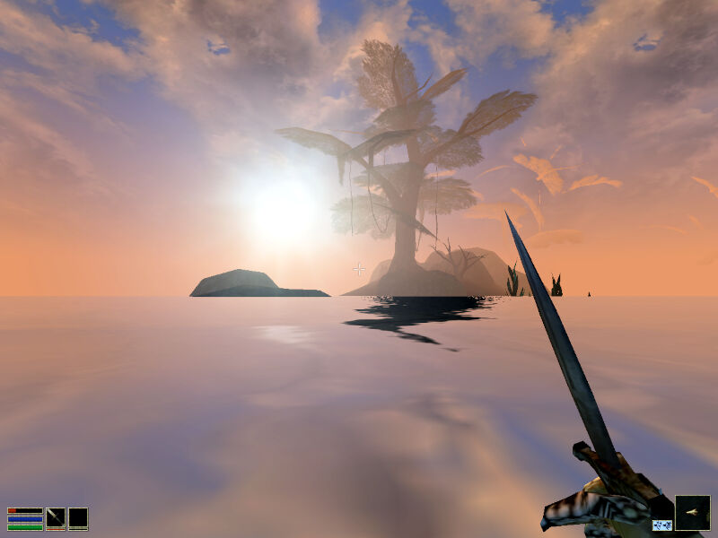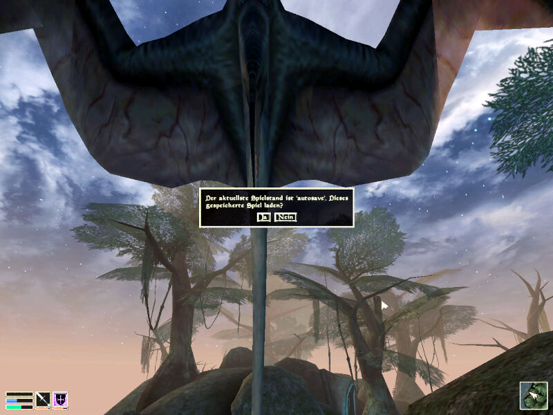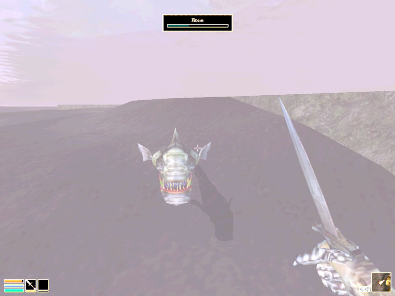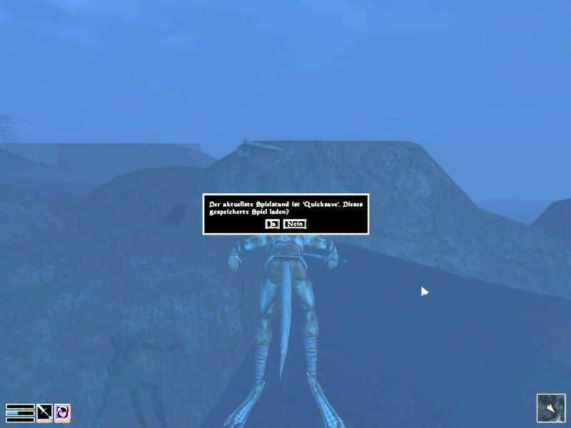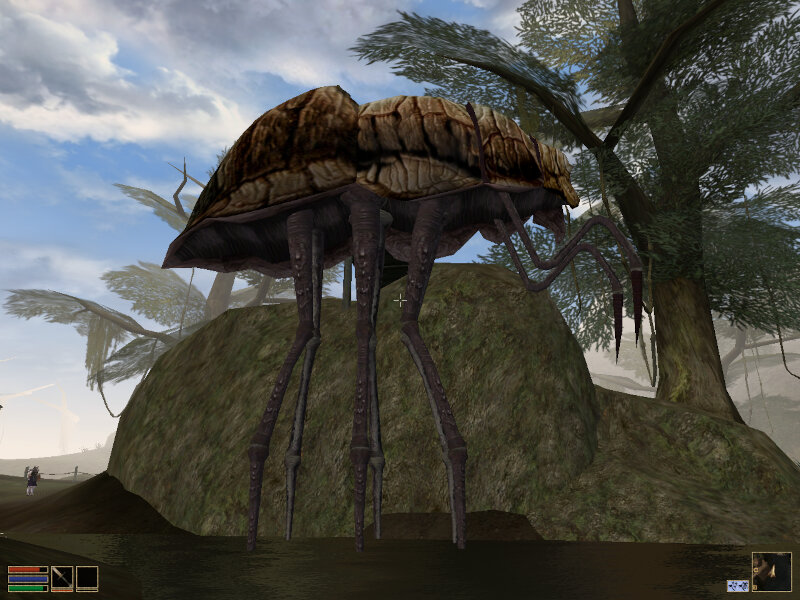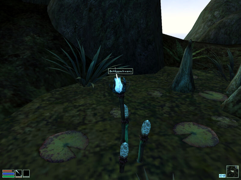Die wurmigen Bewohner des Startdorfes langweilen mich. Ich begebe mich auf eine lange Wanderschaft und hoffe, den ersten Teil meiner Quest erfüllen zu können. Nach einigen Metern juckt jedoch bereits mein kleiner Zeh. Bewegung ist wohl nichts für mich. Ich schmeiße dem Schlickschreiter ein paar Draken in die Eingeweide und los geht’s nach Balmora!