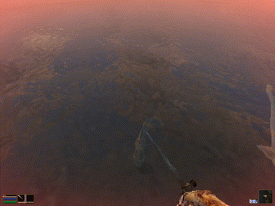 Neues Questziel: Dusche von Heilmasseur Fritz suchen. Die mir mitgeteilte Wegbeschreibung lautet wie folgt: dreimal gackernd im Kopfstand auf einem Bein im Kreis drehen, durch die eigene Nase kriechen und dann direkt geradeaus. Nicht zu verfehlen. Nach stundenlanger Suche lande ich auf einem Hügel oberhalb der Stadt. Keine Spur von einer Dusche. Ich hasse diesen Ort.