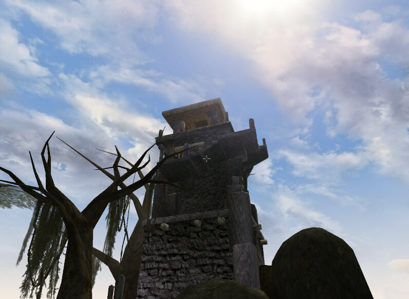 Dass es keine Questmarker gibt, stimmt mich als verwöhnten Gamer etwas mürrisch. Jetzt muss ich doch tatsächlich lesen und Hirn einschalten. Dieses Abenteuer ist bereits nach den ersten Minuten dem bitteren Digitaltod geweiht. Aber so einfach gebe ich nicht auf. Stattdessen lese ich meine Questtexte trotzdem nicht, sondern klettere auf einen hübschen Turm.