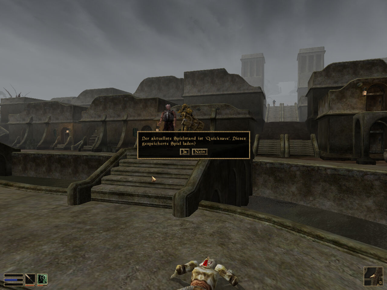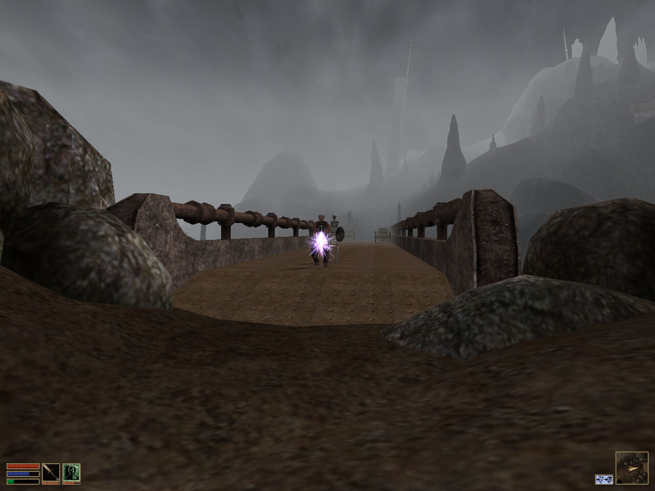 Gadgeto Reptilienbeinchen go go! Flucht zurück nach Balmora! Die Wachen dort sind meine letzte Hoffnung. Die beobachten aber nur einfallslos das Massaker welches Leuchtschritt-Hans mit mir erneut verursacht. Zum Zinnober nochmal! Balmora du und deine blümeranten Bewohner können mich mal am Steißbein!